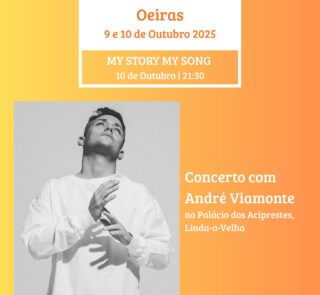 ▪️ No dia 10 de outubro, pelas 21h30, o Palácio dos Aciprestes, em Linda-a-Velha, recebe o espetáculo musical “My Story, My Song”, protagonizado pelo artista André Viamonte, e que dá voz e música a histórias de vida e superação.